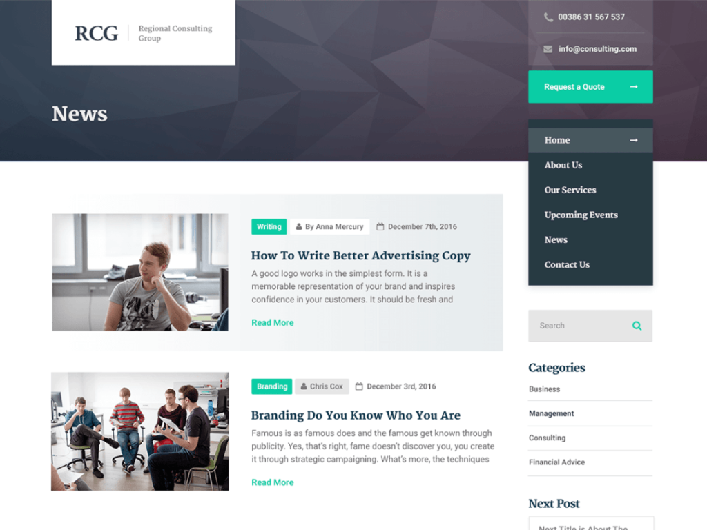Flex Business is a clean and modern WordPress theme suitable for consulting websites. It offers a sleek and professional design that will make your website stand out. With its customizable options, you can easily personalize the theme to match your brand and showcase your services effectively. Flex Business also integrates seamlessly with popular plugins, allowing you to extend its functionality and add additional features to your website.
